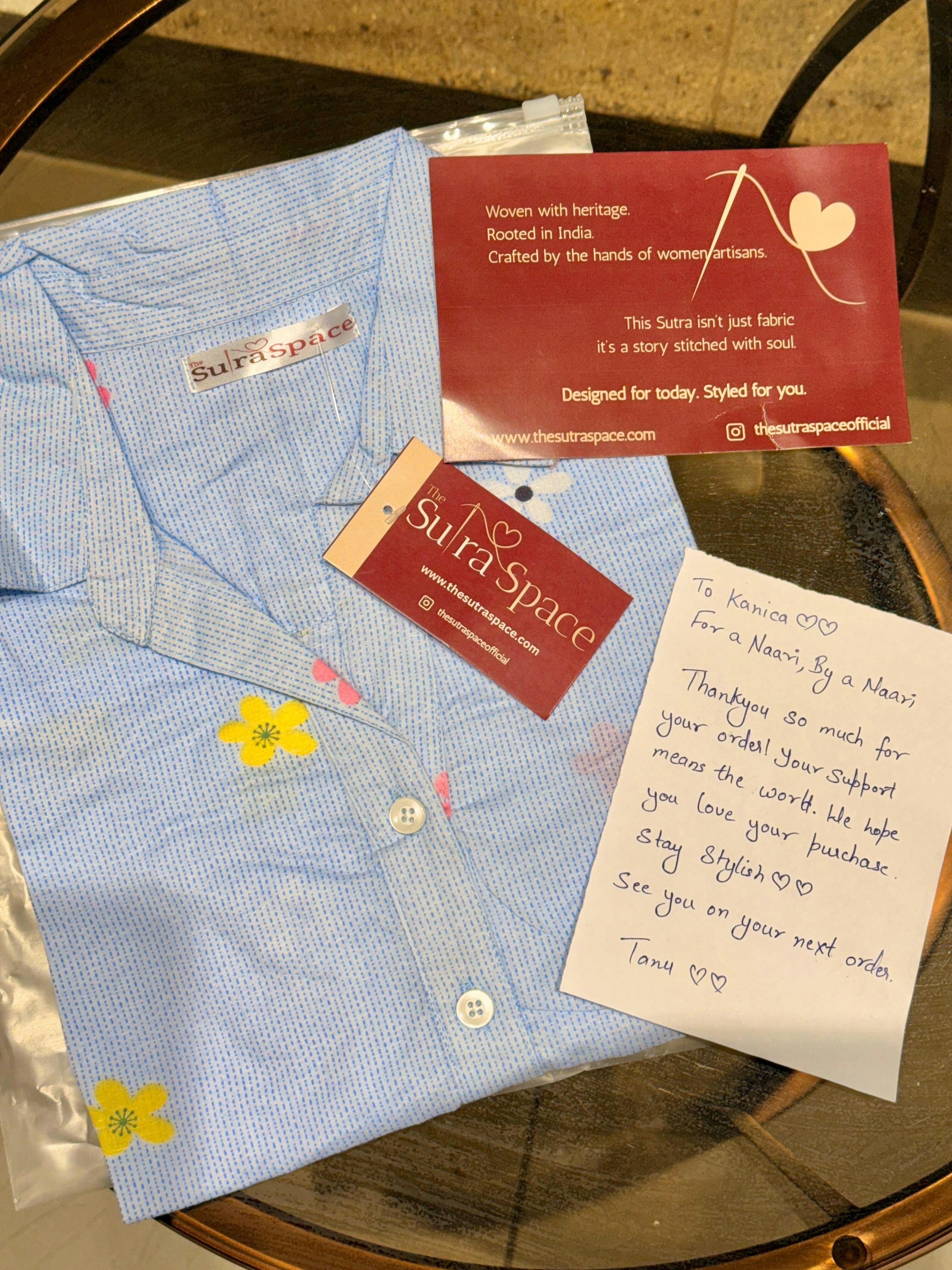 Refresh your wardrobe with this blue cotton shirt adorned with floral embroidery. Designed with a bust dart for a perfect fit and foldable sleeves with a flap, it’s a versatile pick for college, office, or casual outings. Pair it with jeans or trousers for a smart yet effortless look.